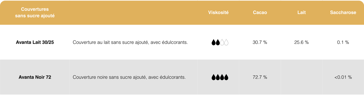 Nos couvertures sont fabriquées en Suisse à partir de matières premières soigneusement sélectionnées selon des procédés traditionnels. Notre large gamme comprend des couvertures au lait, noires et blanches avec des profils de saveurs personnalisés, parfaitement conçus pour vos produits et exigences. Grâce à leurs excellentes propriétés, nos couvertures conviennent à de nombreuses applications et répondent aux normes de qualité les plus élevées.